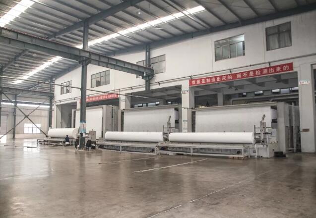 目前,一、二期項(xiàng)目已于去年建成投產(chǎn)。本次考察的是第三期項(xiàng)目,本項(xiàng)目于2018年6月18日開工建設(shè),新建廠房2.6萬平方米,現(xiàn)已全部完成土建和設(shè)備安裝工作,項(xiàng)目達(dá)產(chǎn)后將形成年產(chǎn)2.6億平方米的生產(chǎn)規(guī)模。該項(xiàng)目設(shè)備采用世界一流的無紡布生產(chǎn)線,與傳統(tǒng)設(shè)備相比,節(jié)能10%,效率提升20%,產(chǎn)品質(zhì)量達(dá)國際先進(jìn)水平。